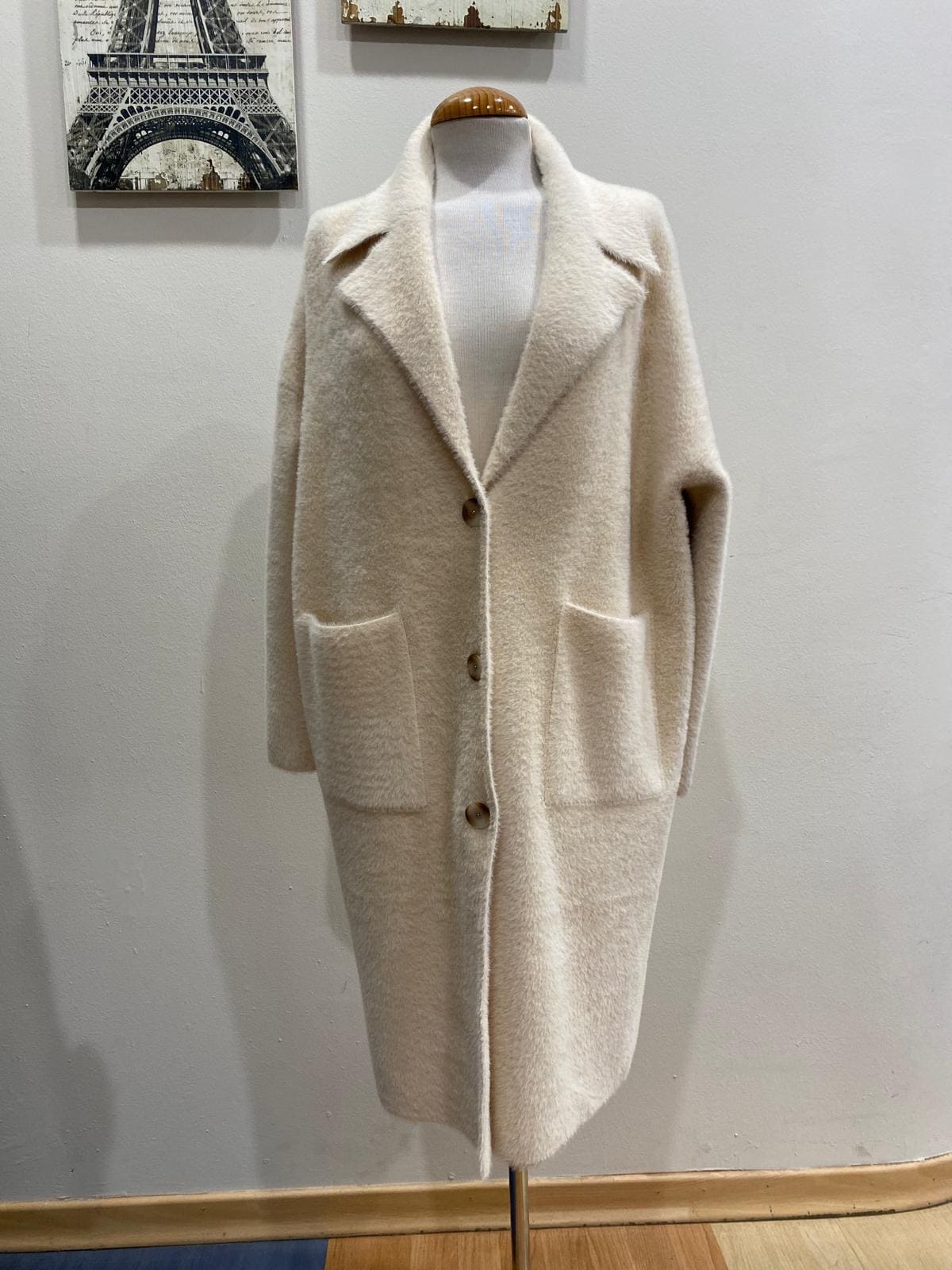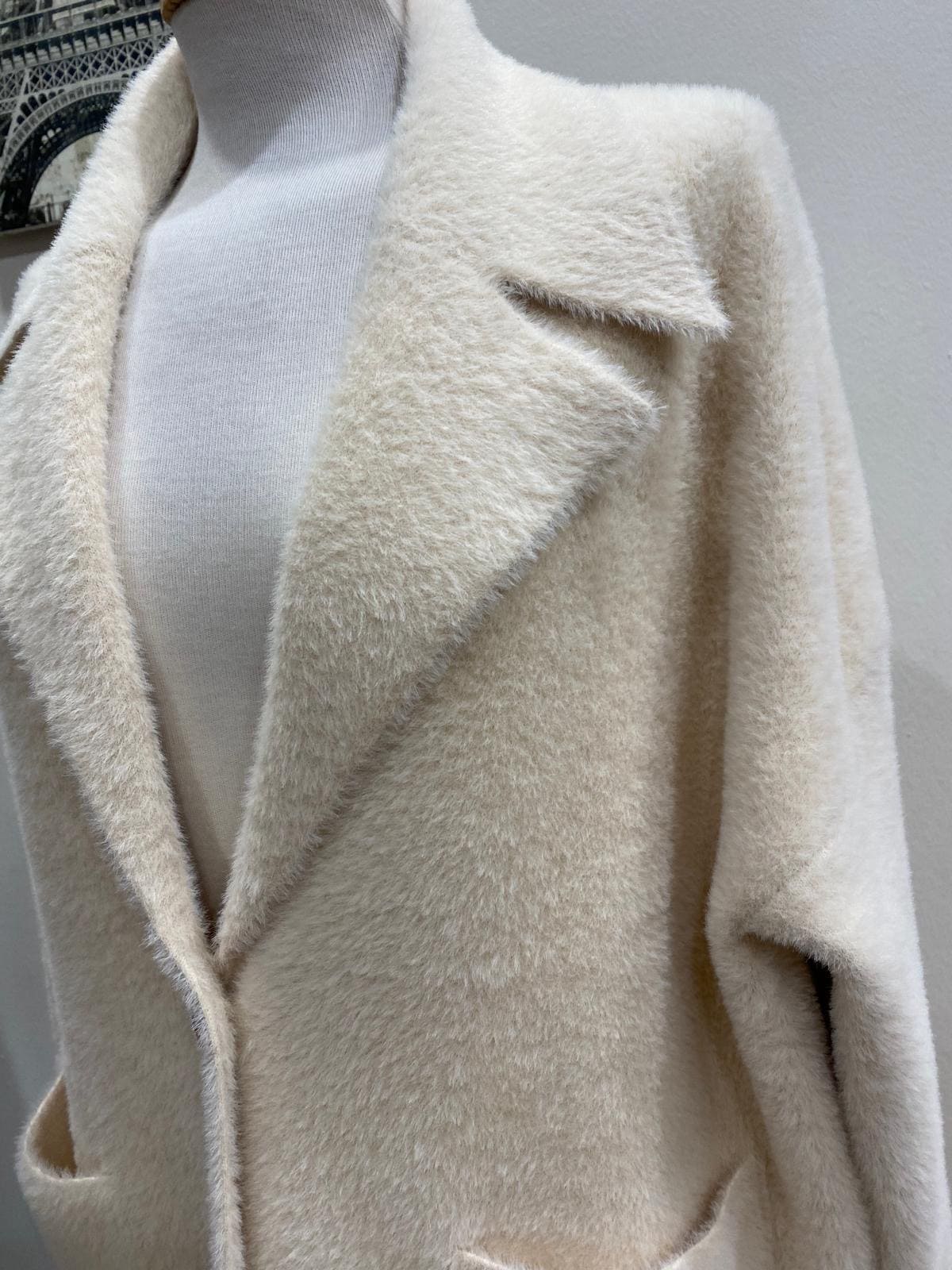 ABRIGO DE PAÑO CON PELITO, DISEÑADO PARA ENVOLVERTE CON CALIDEZ Y ESTILO. DESTACA POR SU CUELLO CON SOLAPA Y BOLSILLOS FRONTALES AÑADIENDO UN TOQUE CLASICO, SU DISEÑO CRUZADO Y EL CINTURON ACENTUAN LA SILUETA, APORTANDO UN EQUILIBRIO PERFECTO ENTRE FUNCIONALIDAD Y MODA.