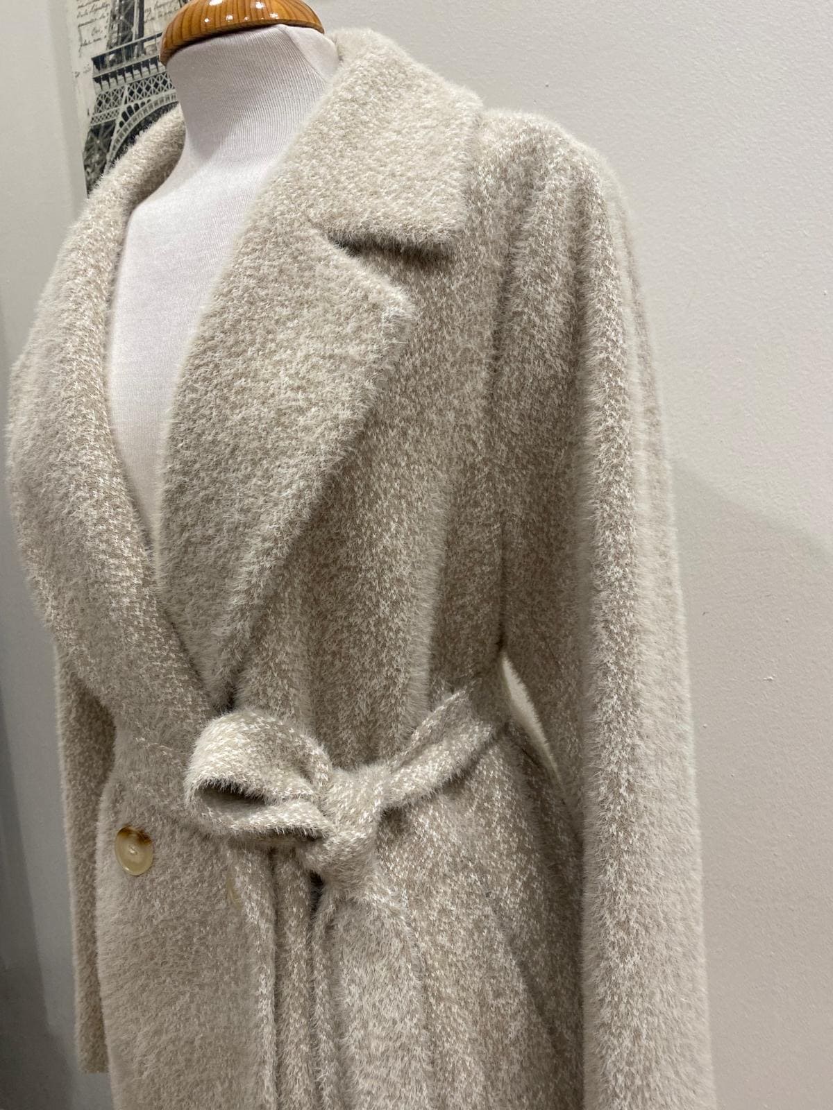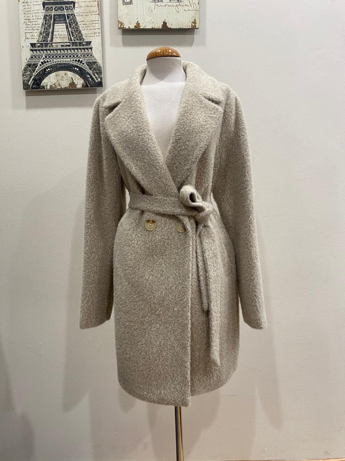 ABRIGO DE PAÑO CON PELITO, DISEÑADO PARA ENVOLVERTE CON CALIDEZ Y ESTILO. DESTACA POR SU CUELLO CON SOLAPA Y BOLSILLOS FRONTALES AÑADIENDO UN TOQUE CLASICO, SU DISEÑO CRUZADO Y EL CINTURON ACENTUAN LA SILUETA, APORTANDO UN EQUILIBRIO PERFECTO ENTRE FUNCIONALIDAD Y MODA.