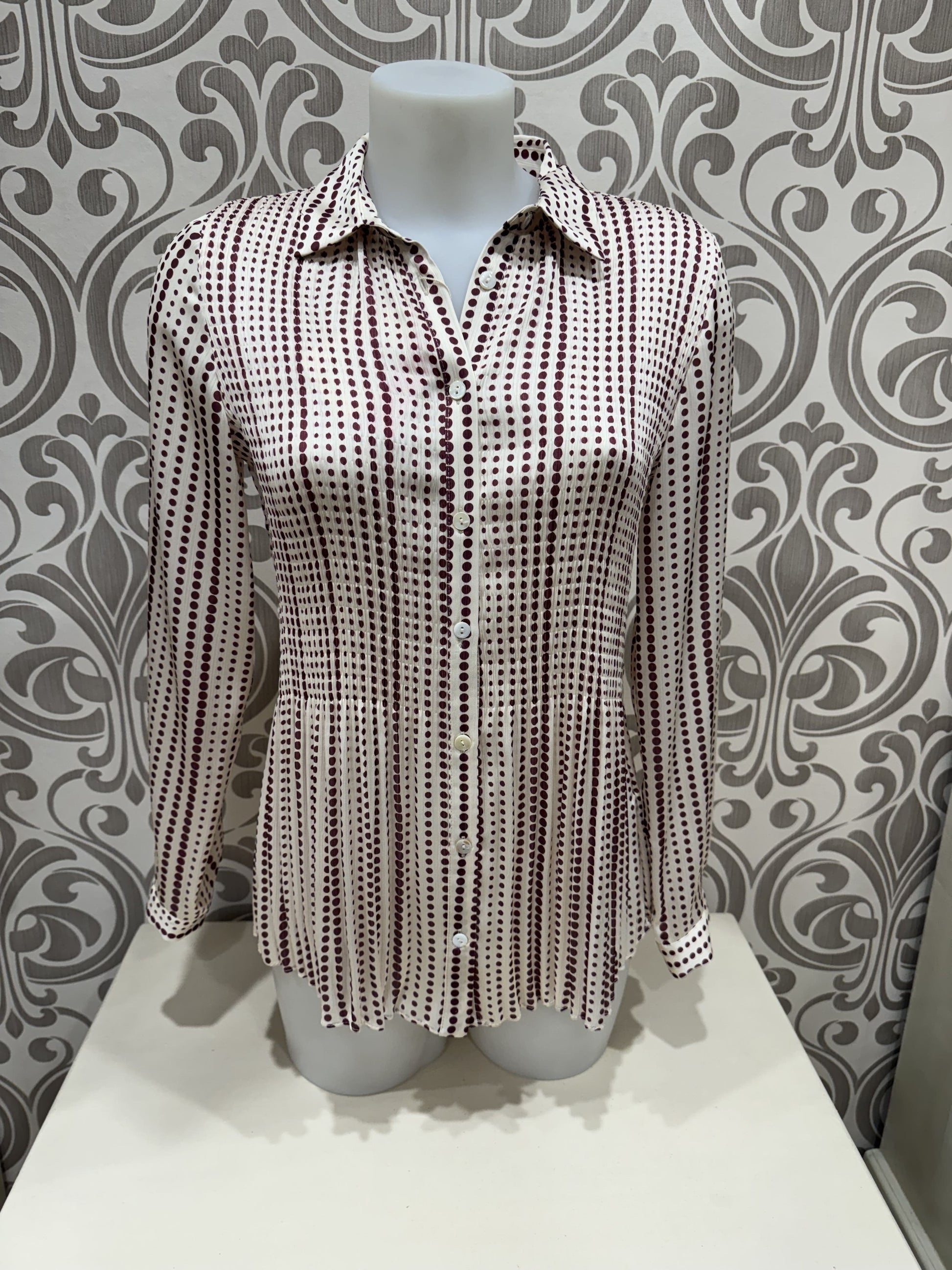 CAMISA PUNTO DE SEDA, ESTAMPADO PUNTOS OTOÑO. PRENDA ELEGANTE Y VERSATIL.